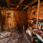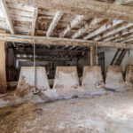 Ancienne maison en lauze avec cheminée en pierre sur 2 niveaux.