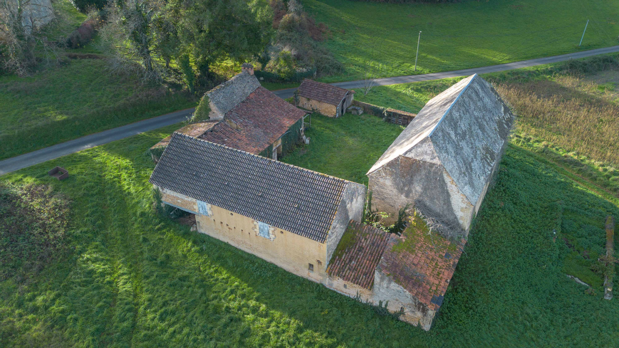 Charmant corps de ferme entièrement à restaurer entouré de ses 1,4 hectares de terres dans un environnement calme et verdoyant.