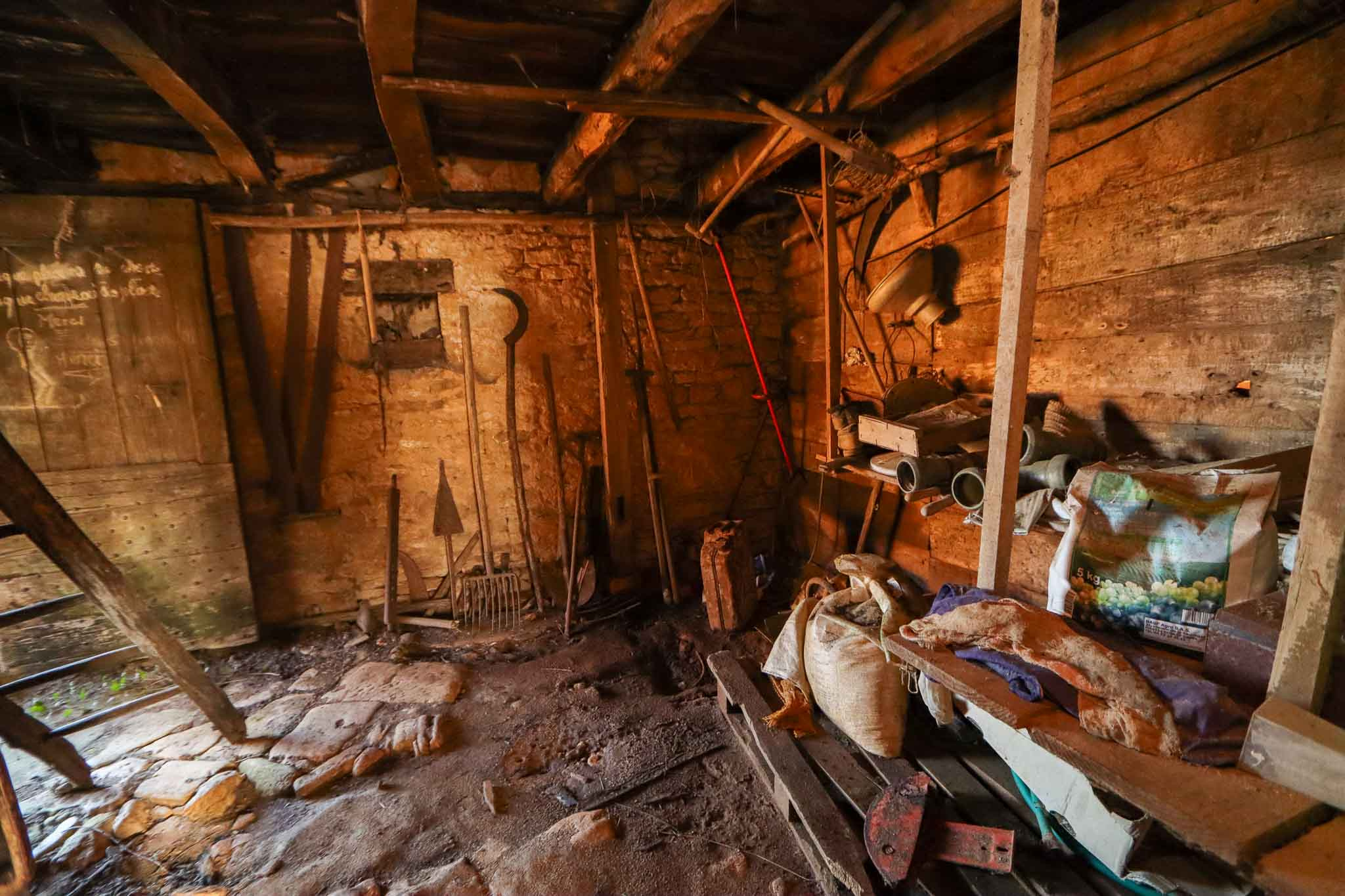 Ancienne maison en lauze avec cheminée en pierre sur 2 niveaux.