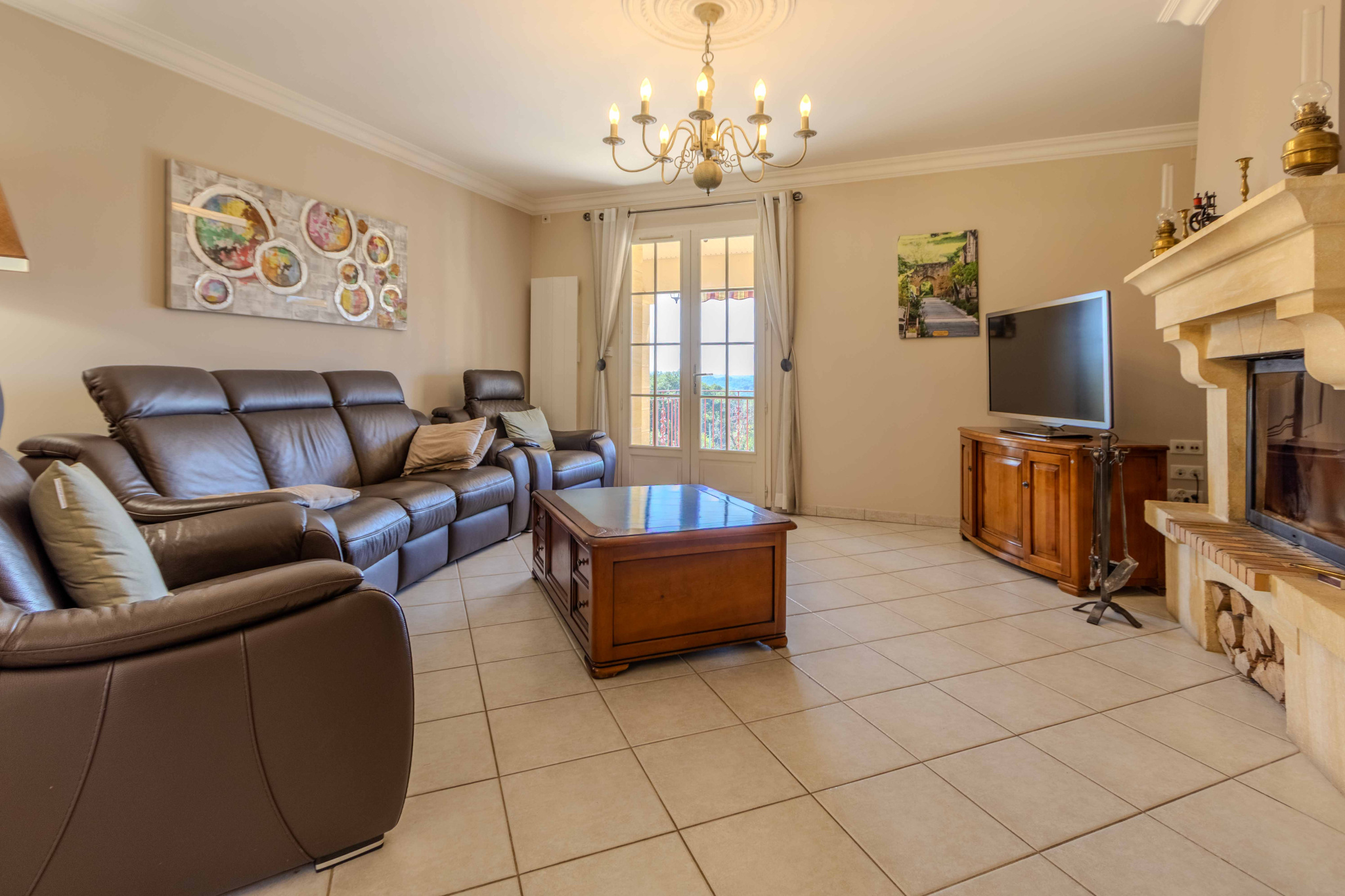 -salon avec insert bois ouvrant sur terrasse couverte,
