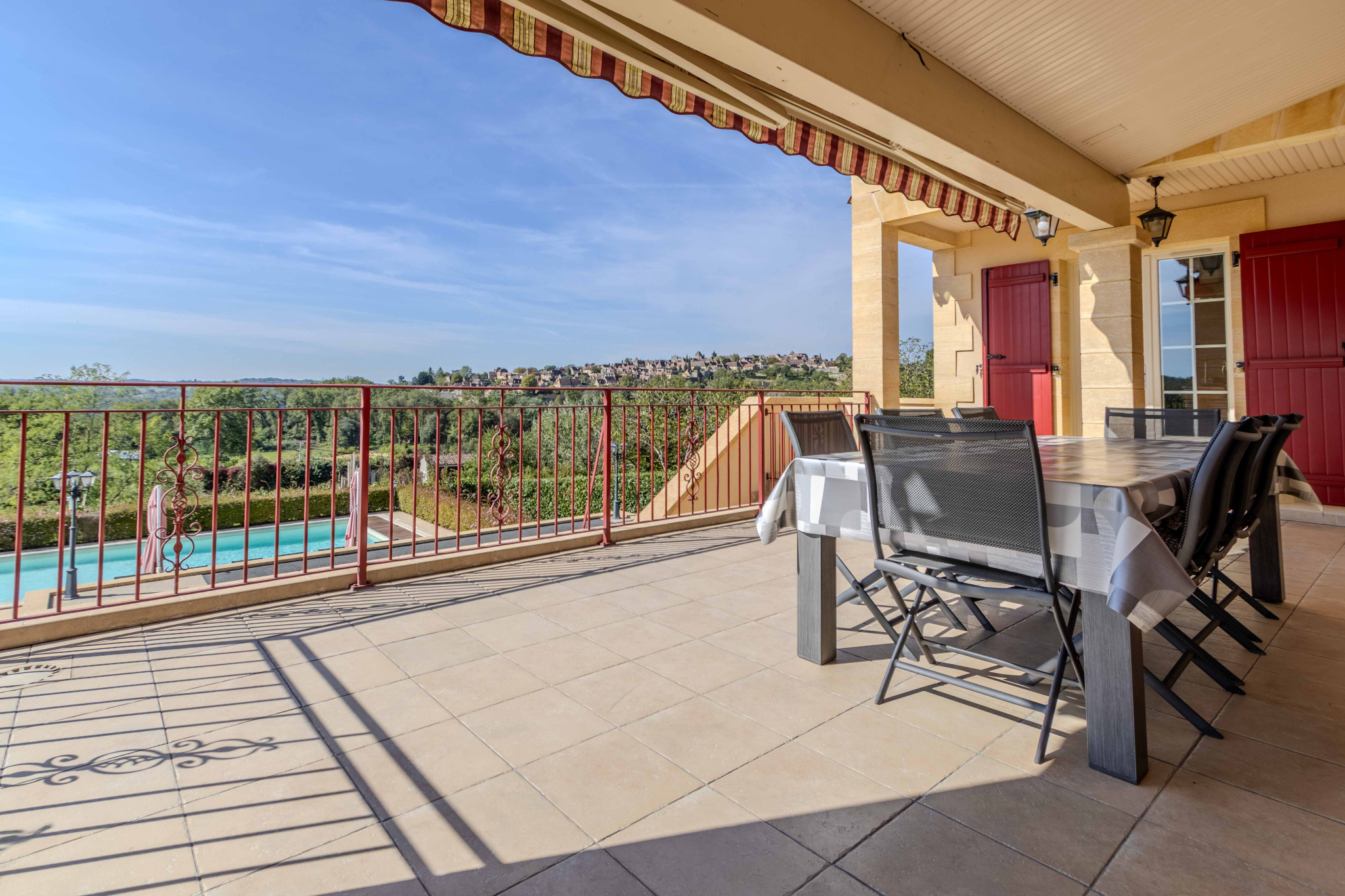 En position dominante, face à la vallée et à la bastide de Domme, cette élégante maison périgourdine construite en 2011 allie authenticité et confort moderne. Conçue pour une vie agréable au quotidien, elle offre des espaces lumineux tournés vers l’extérieur et de belles terrasses couvertes qui prolongent la maison sur le jardin. L’ensemble s’élève sur un terrain clos et paysager, agrémenté d’un portail motorisé. Un bien idéal en résidence principale comme en maison de famille, offrant une qualité de vie privilégiée au cœur du Périgord Noir.
