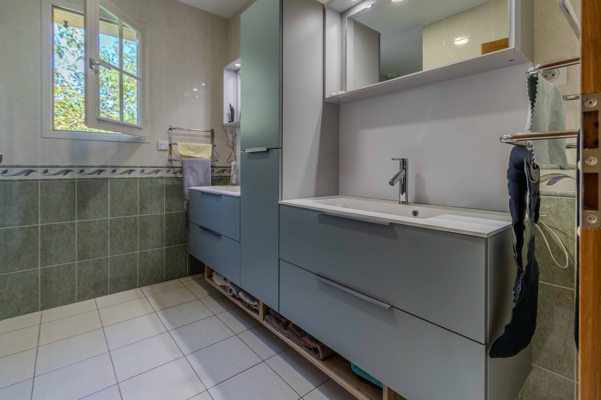 -salle d’eau avec double vasque et douche à l’italienne,
