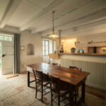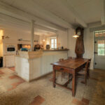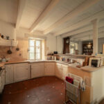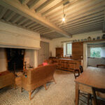 -Cuisine avec séjour, cheminée ouverte, sol en pisé et poutraison,