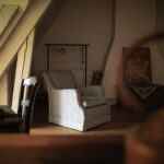 -Grande chambre parquet bois et poutraison, avec penderie sous rampants, traversante,