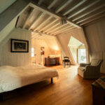 -Chambre avec parquet bois et poutraison,