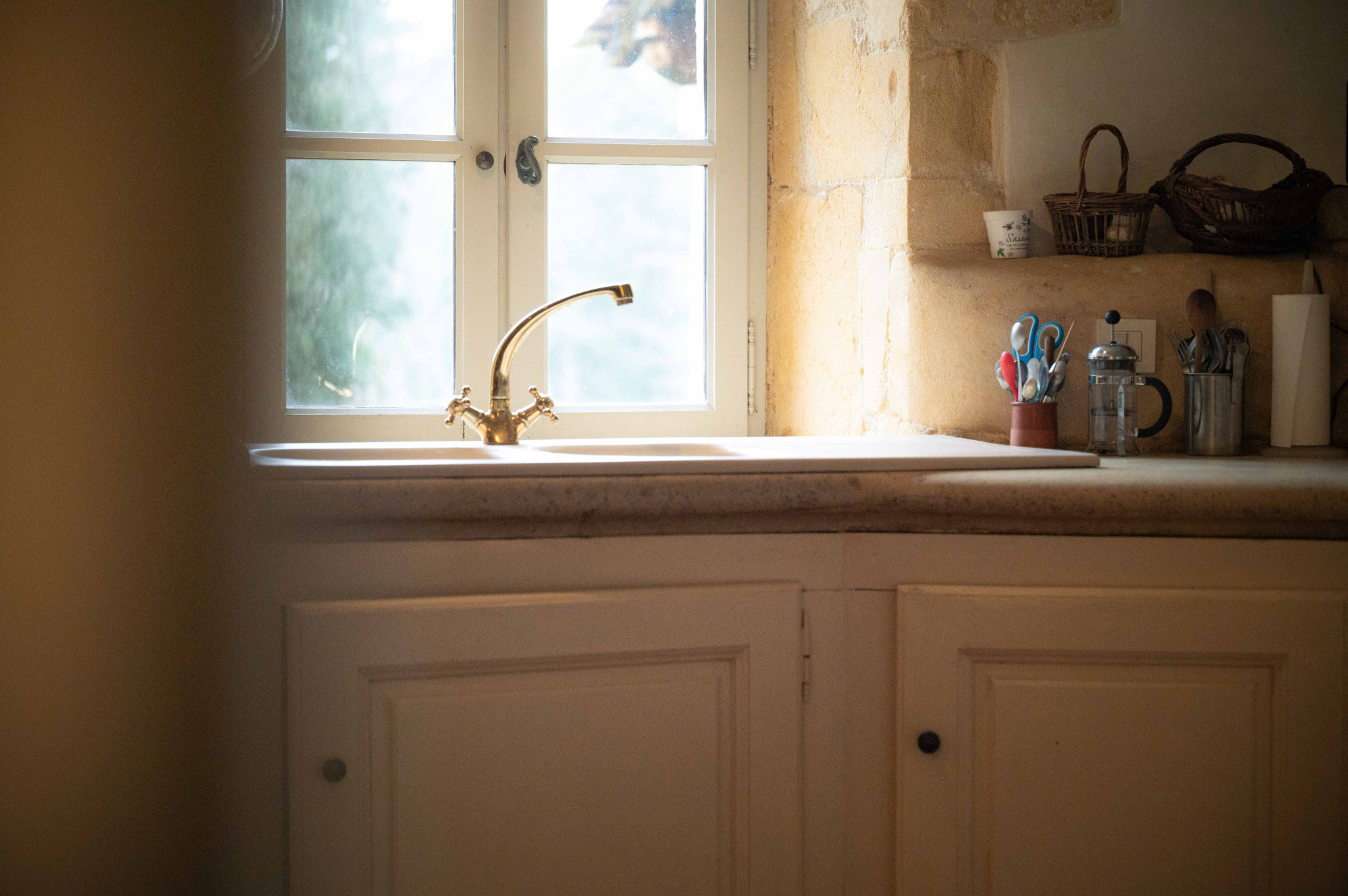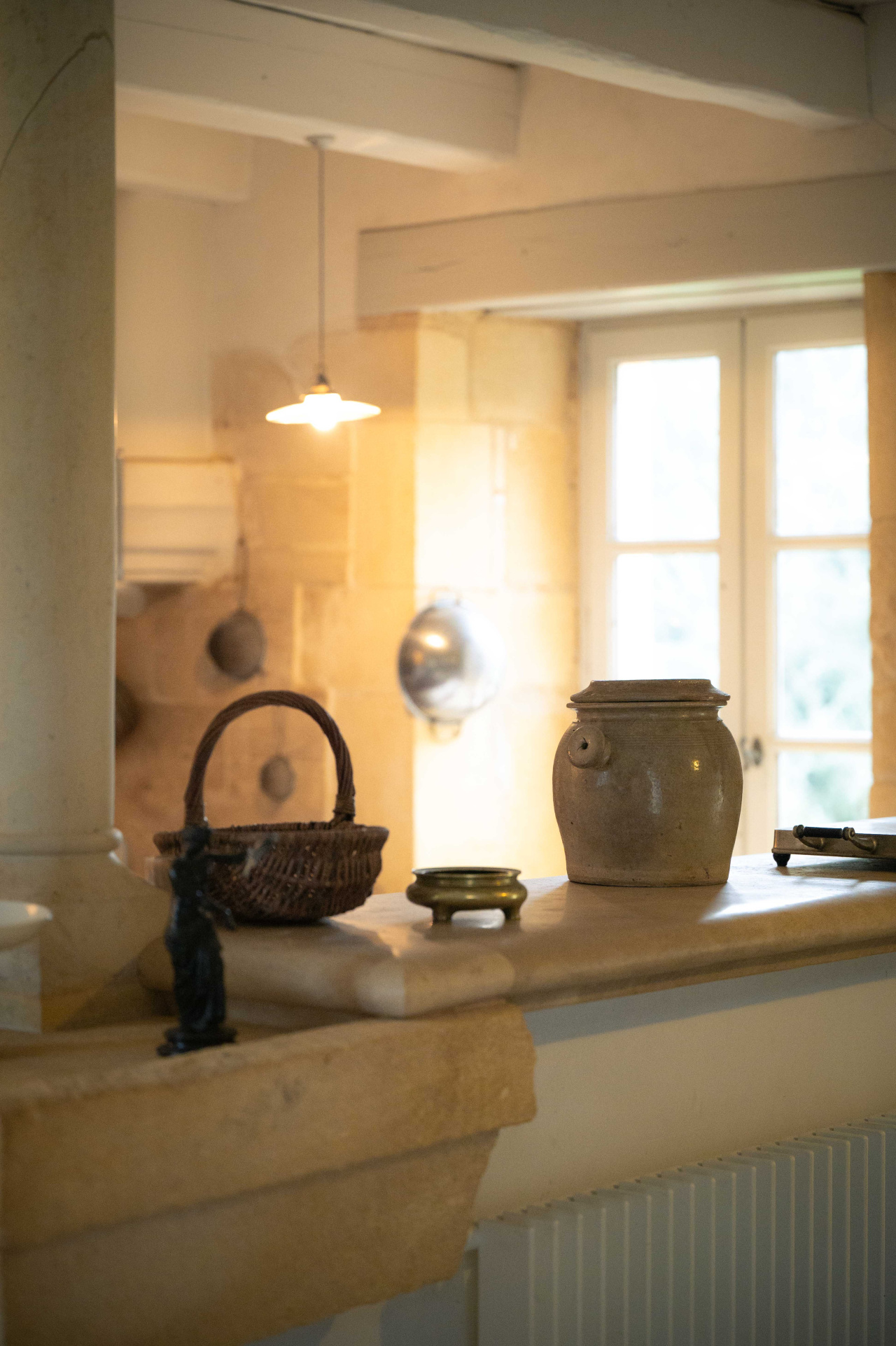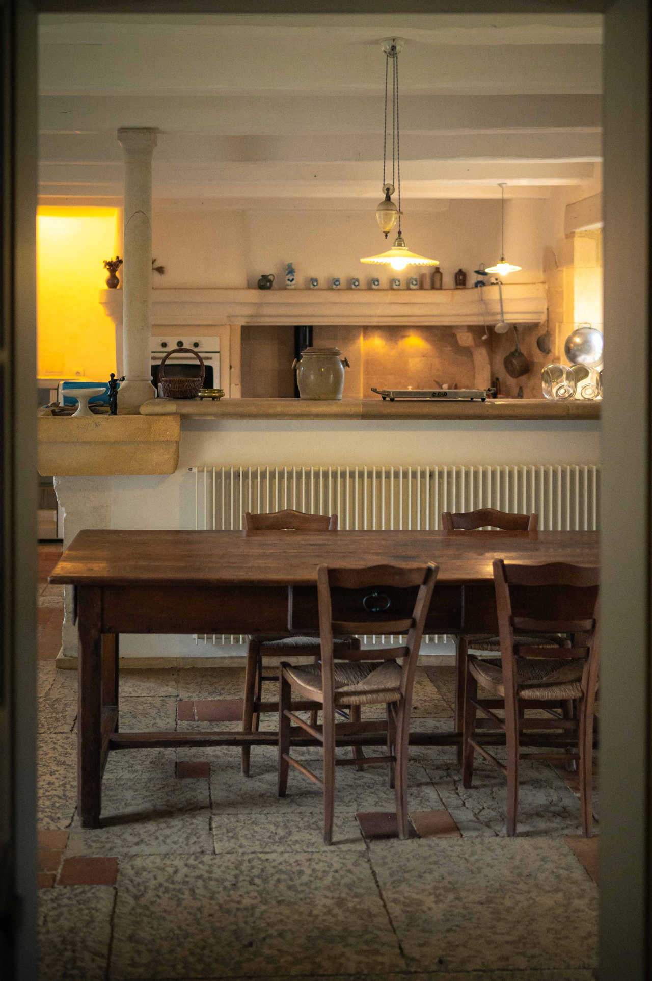 -Entrée ouverte sur séjour, cuisine de campagne,