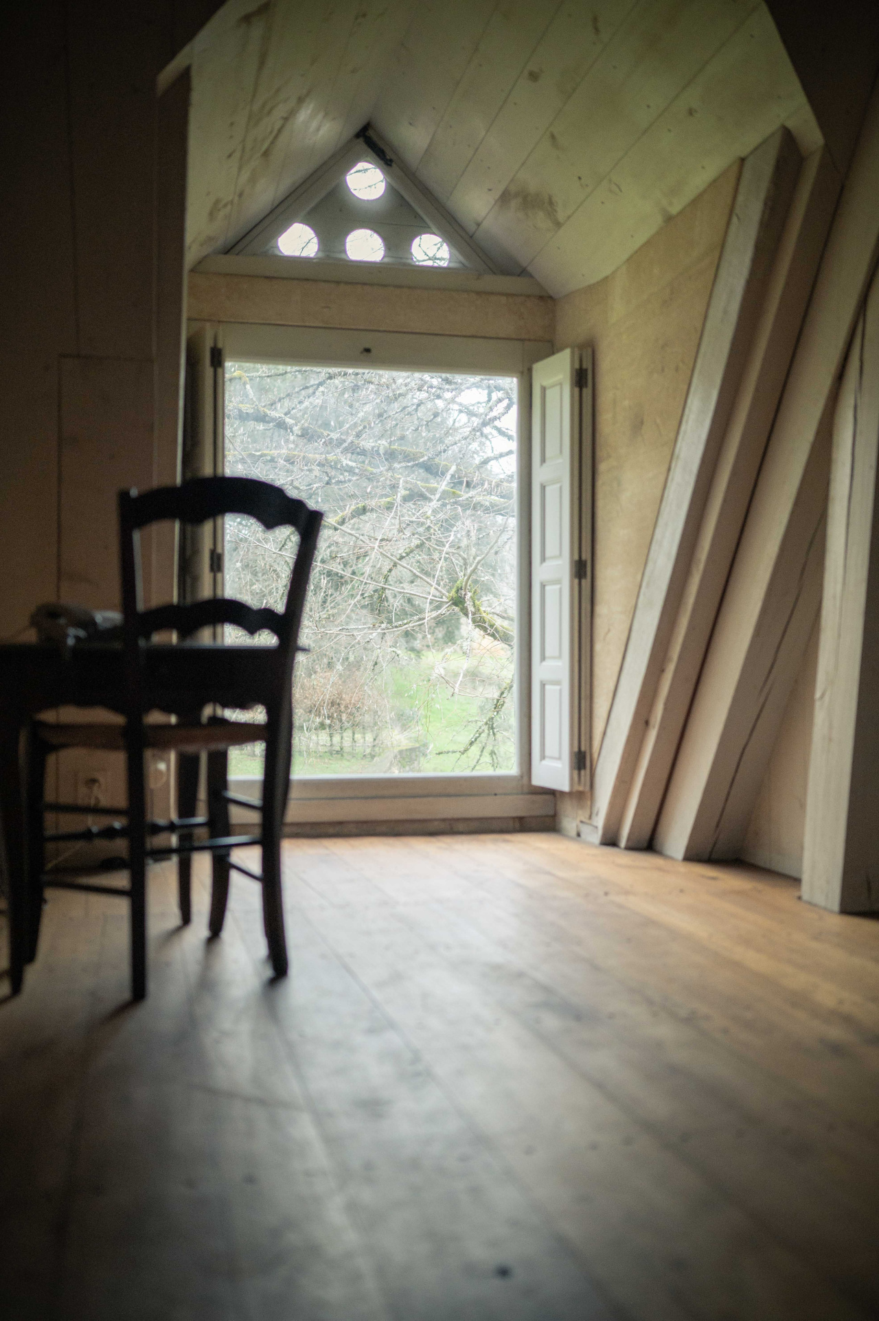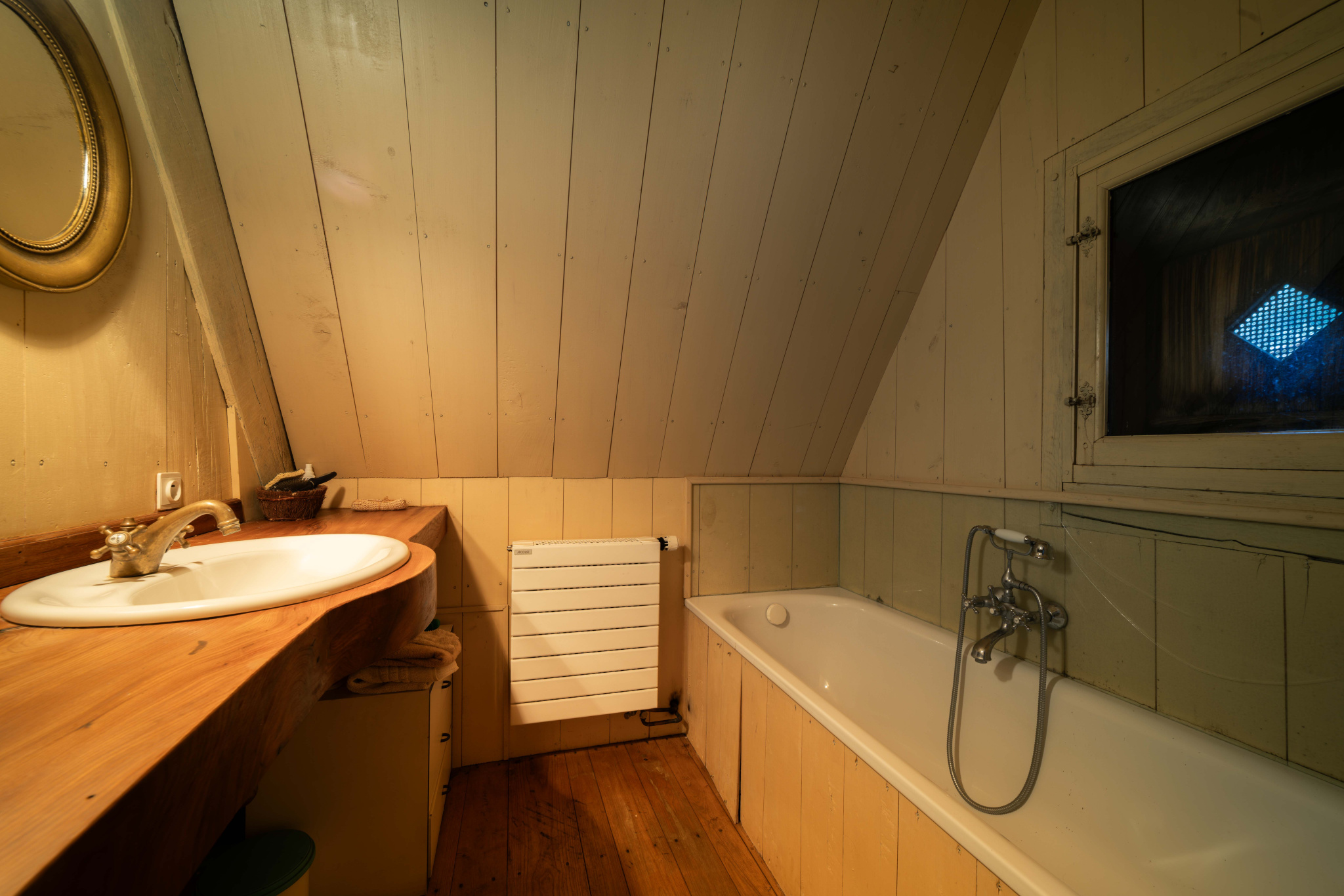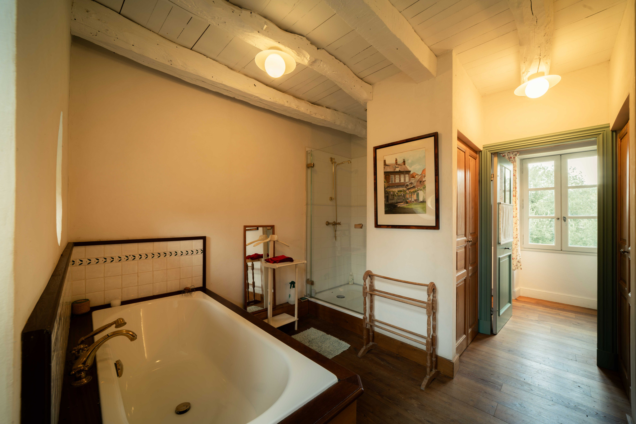 -Grande chambre parquet bois et poutraison, avec penderie sous rampants, traversante,