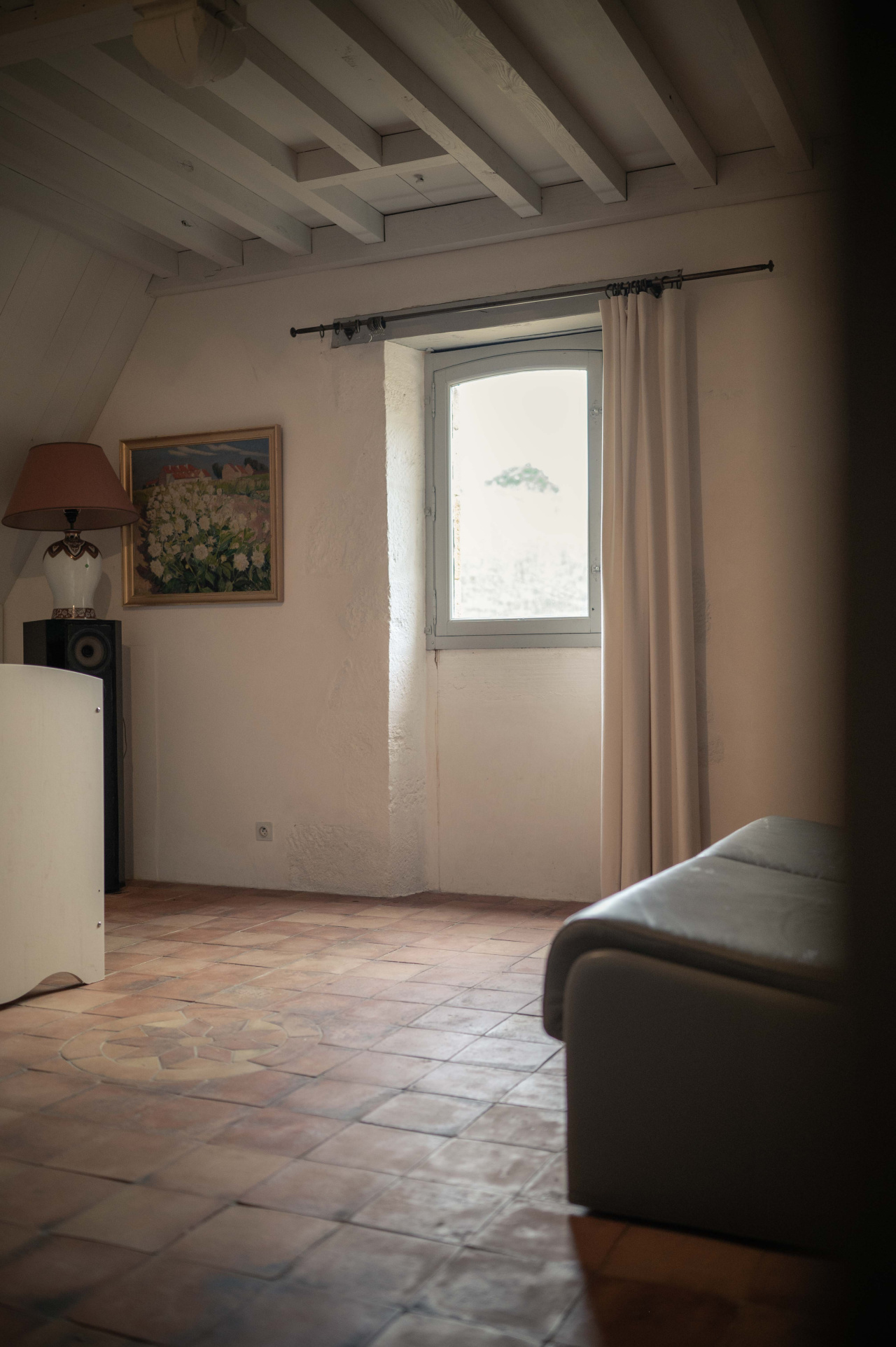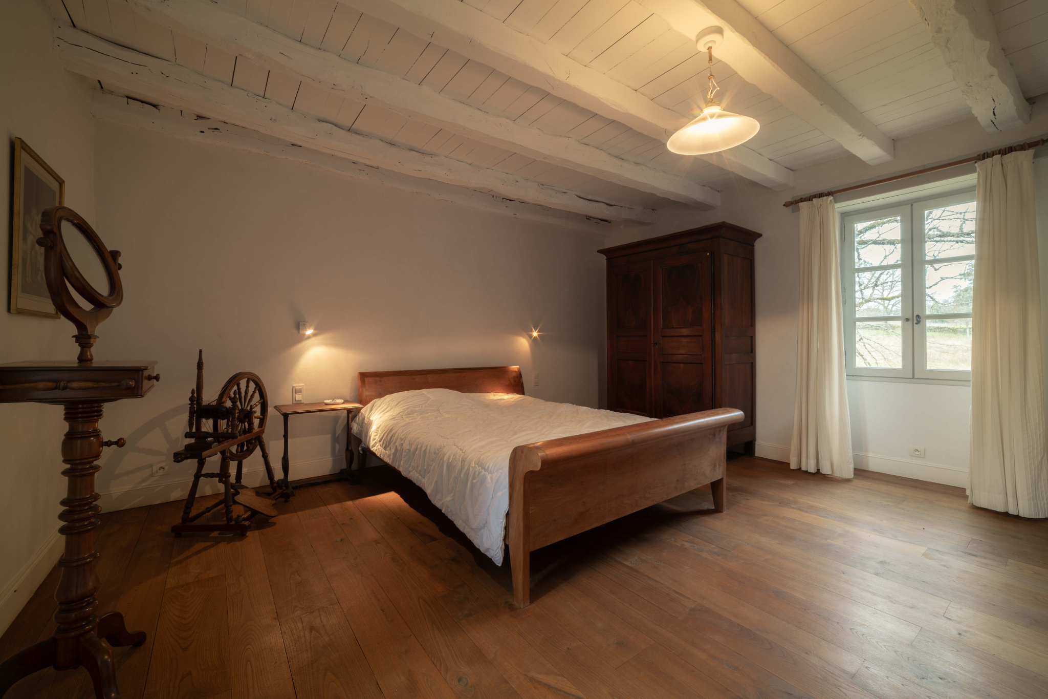 -Chambre avec parquet bois et poutraison,