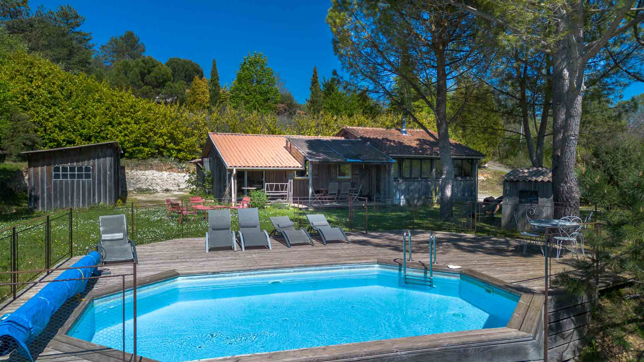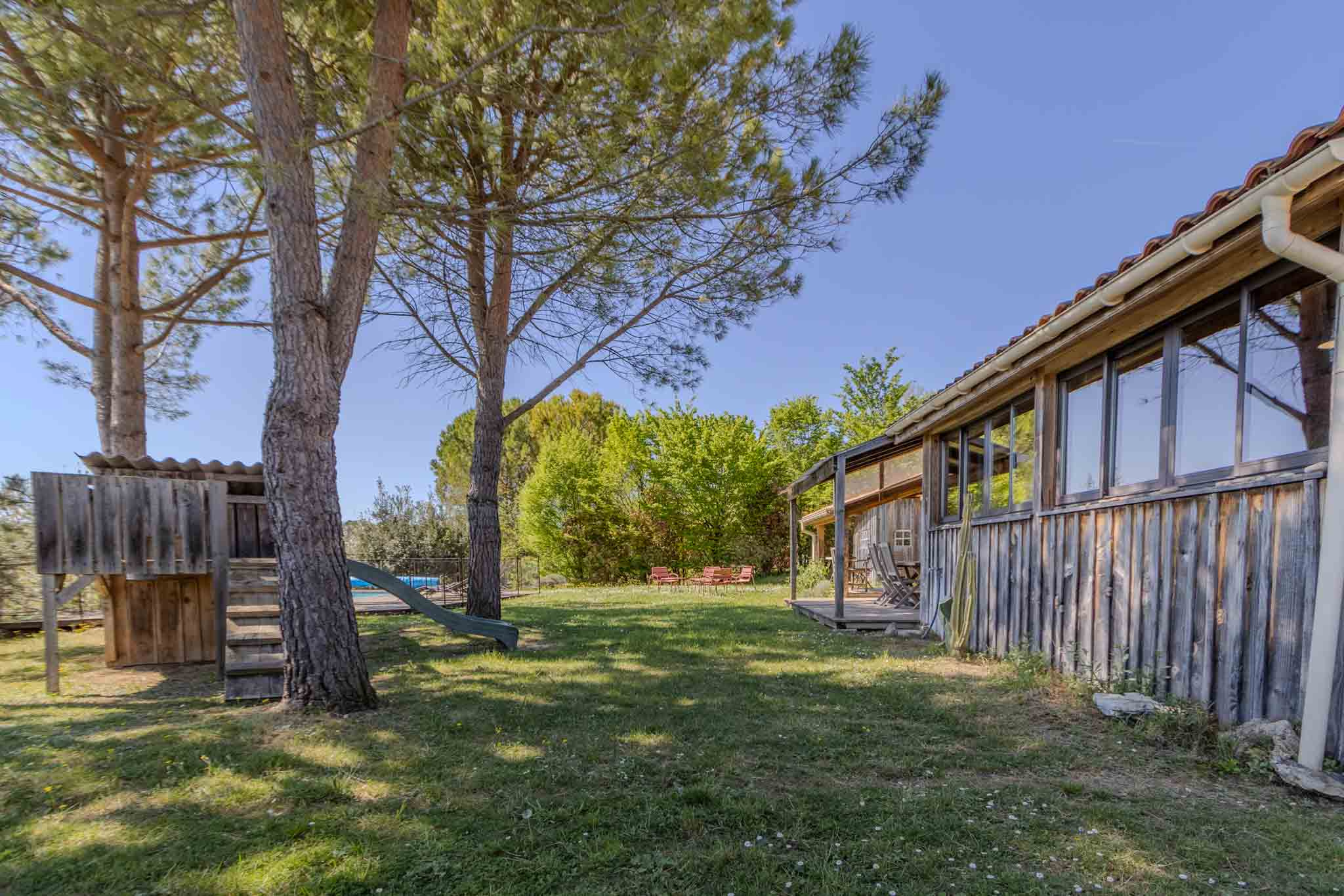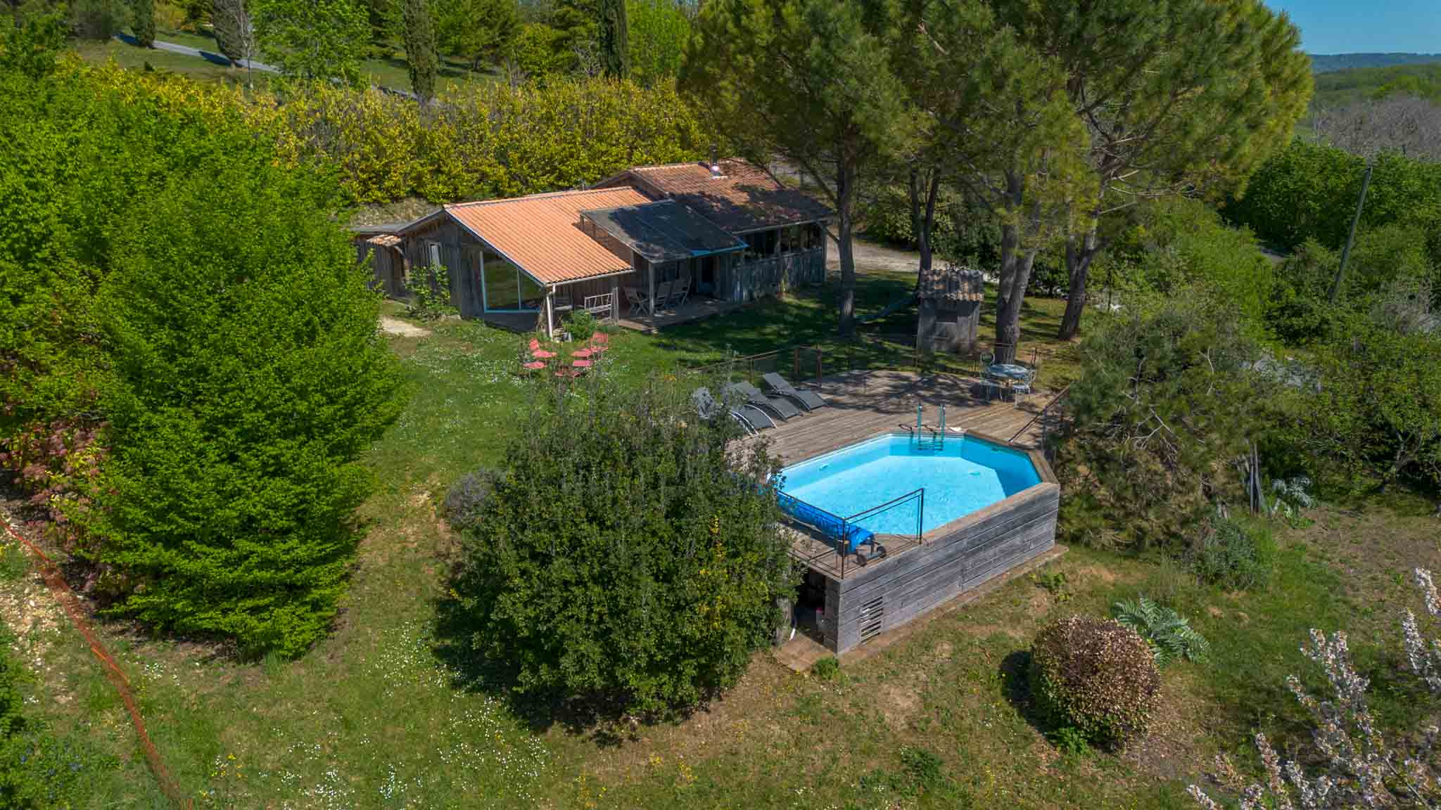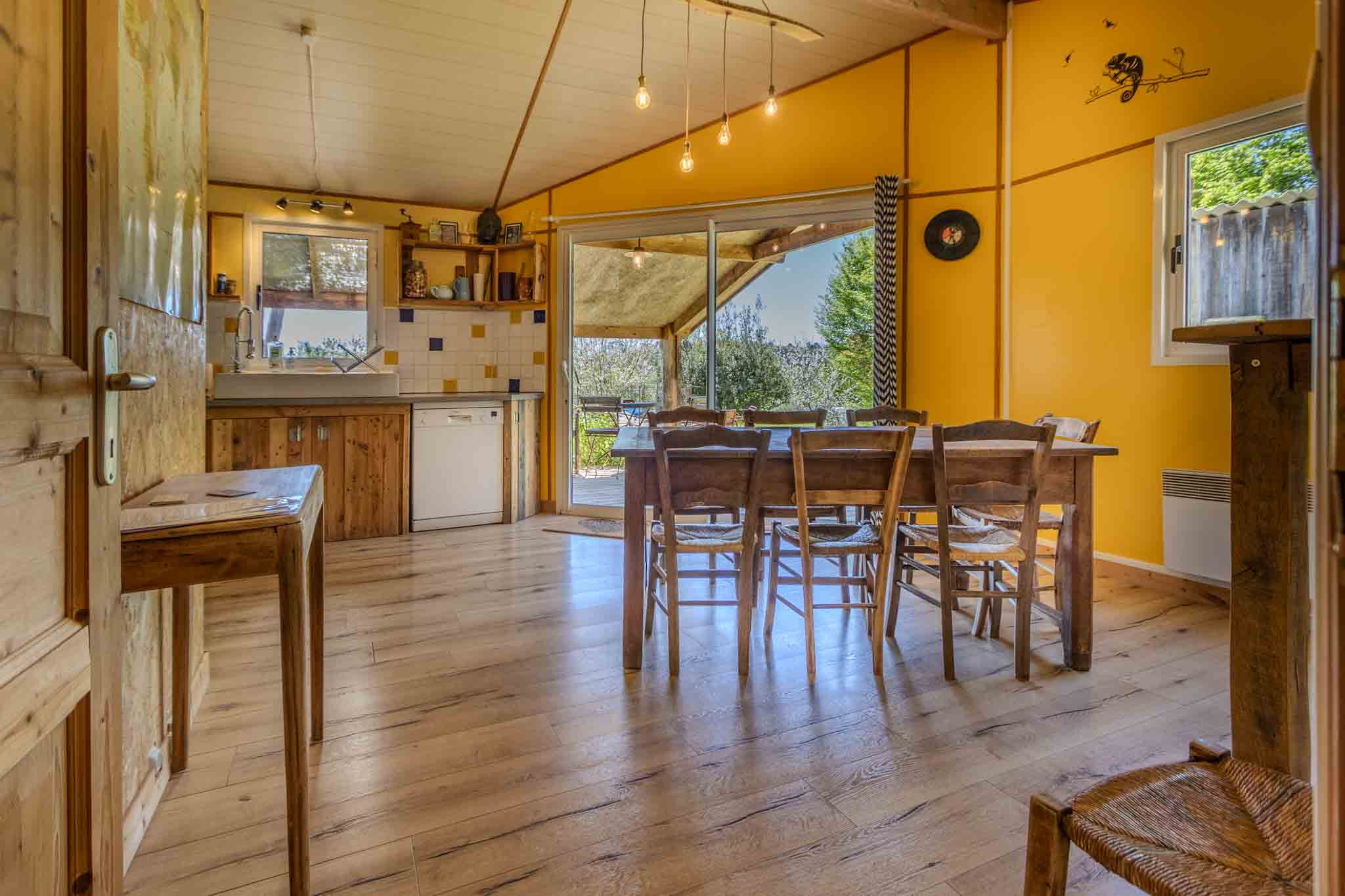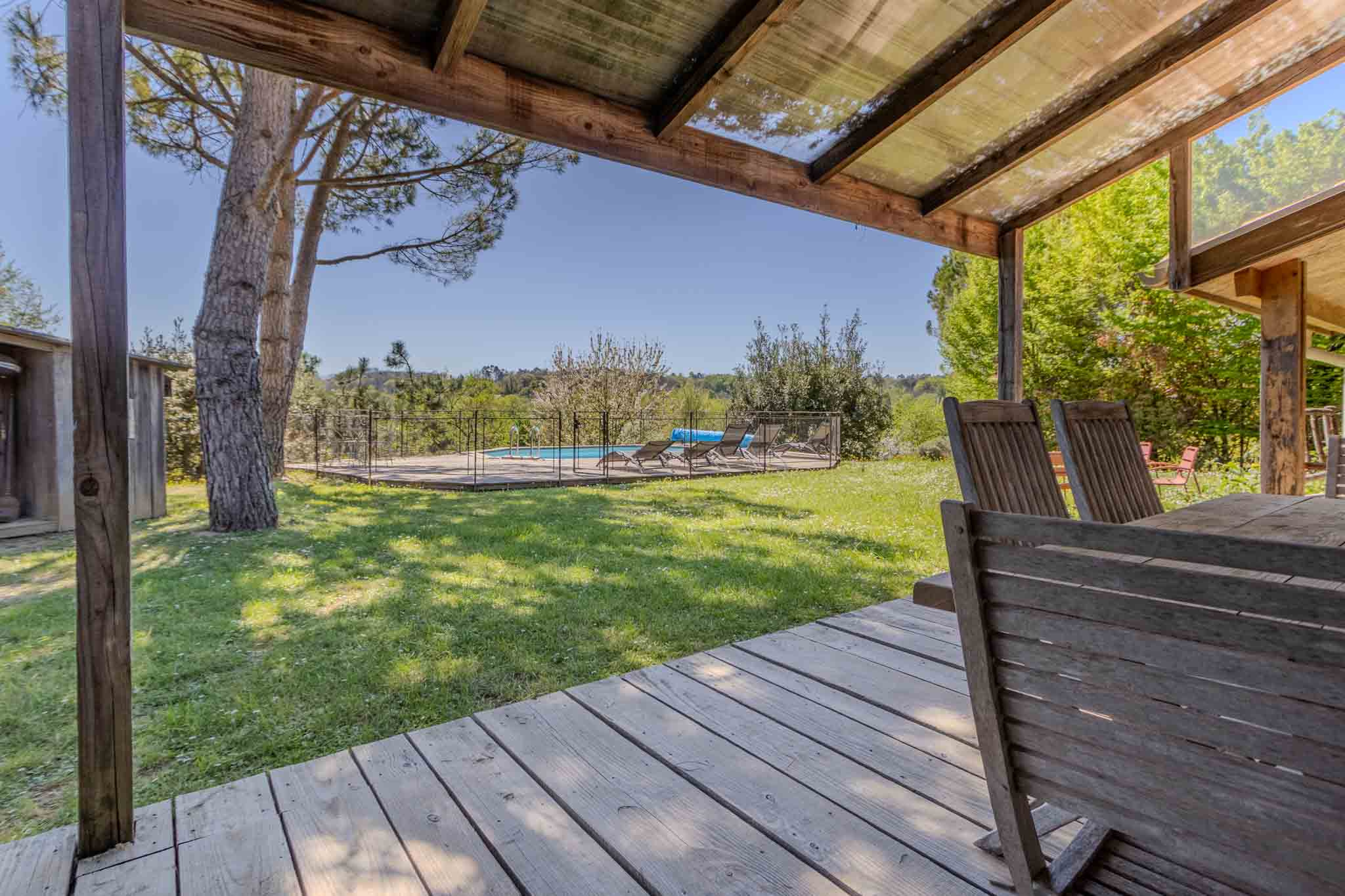 Chalet en bois plein de charme, construit dans les années 2003-2004 avec extensions, aujourd’hui exploité en location saisonnière avec un excellent rendement, il est aussi idéal en résidence principale. Niché au calme, au cœur d’un jardin verdoyant dans la vallée de la Dordogne, il offre une atmosphère chaleureuse avec piscine, à seulement 3 minutes en voiture des commodités de Castelnaud-la-Chapelle et des bords de la rivière Dordogne