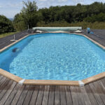 Piscine hors sol, 9,2 x 4,2 m, avec pompe à chaleur au chlore.
