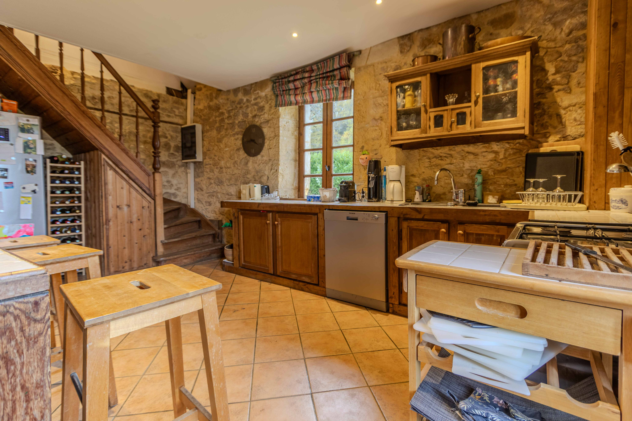 Maison périgourdine de charme avec jolie cour entourée de murs en pierre, datant des années 1850 et entièrement restaurée dans les années 1990, offrant un cadre authentique et paisible. La maison principale, élevée sur sous-sol, propose une chaleureuse pièce de vie dotée d’une cheminée ouverte et d’un poêle à bois. L’étage accueille plusieurs chambres aux volumes mansardés, dont certaines avec penderie, ainsi qu’une salle de bain et une salle d’eau, complétées par de petits espaces de rangement pratiques. Attenants à l’habitation, un garage accessible par l’extérieur, un préau couvert avec ancien four à pain, une ancienne grange au beau potentiel.