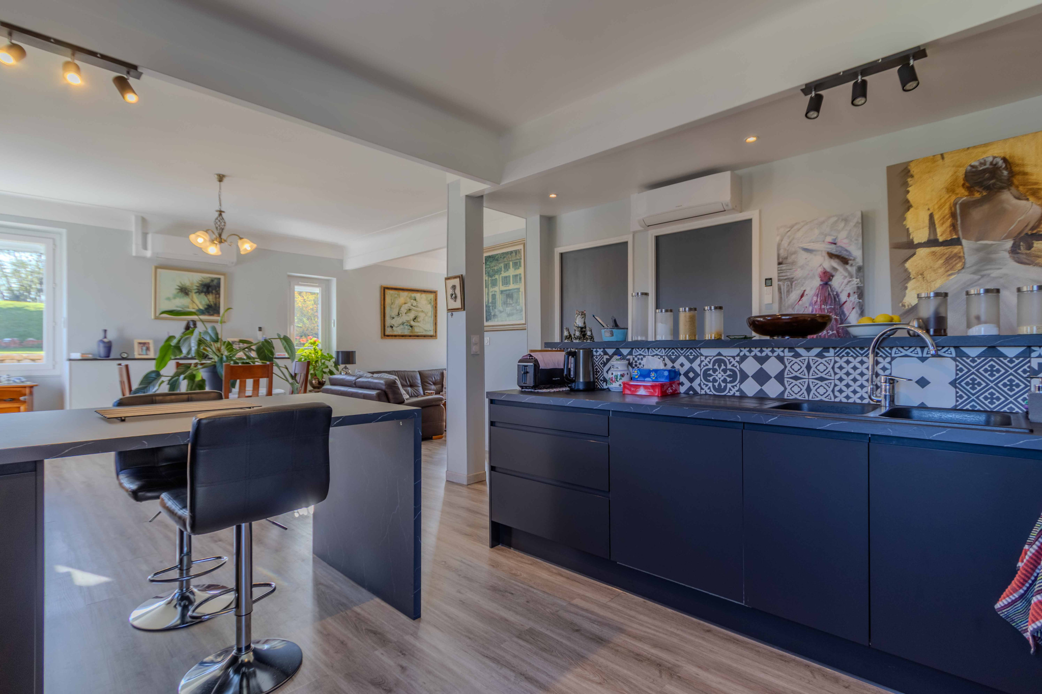 -Pièce de vie ouverte sur cuisine équipée et aménagée avec cheminée,
