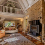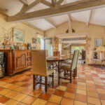 -Salon avec cheminée en pierre, poêle à bois, charpente cathédrale et, à l’étage, une mezzanine ouverte, -Bureau, -Cave à vin, -Chambre avec deux penderies, -Salle d’eau, -Dressing.
