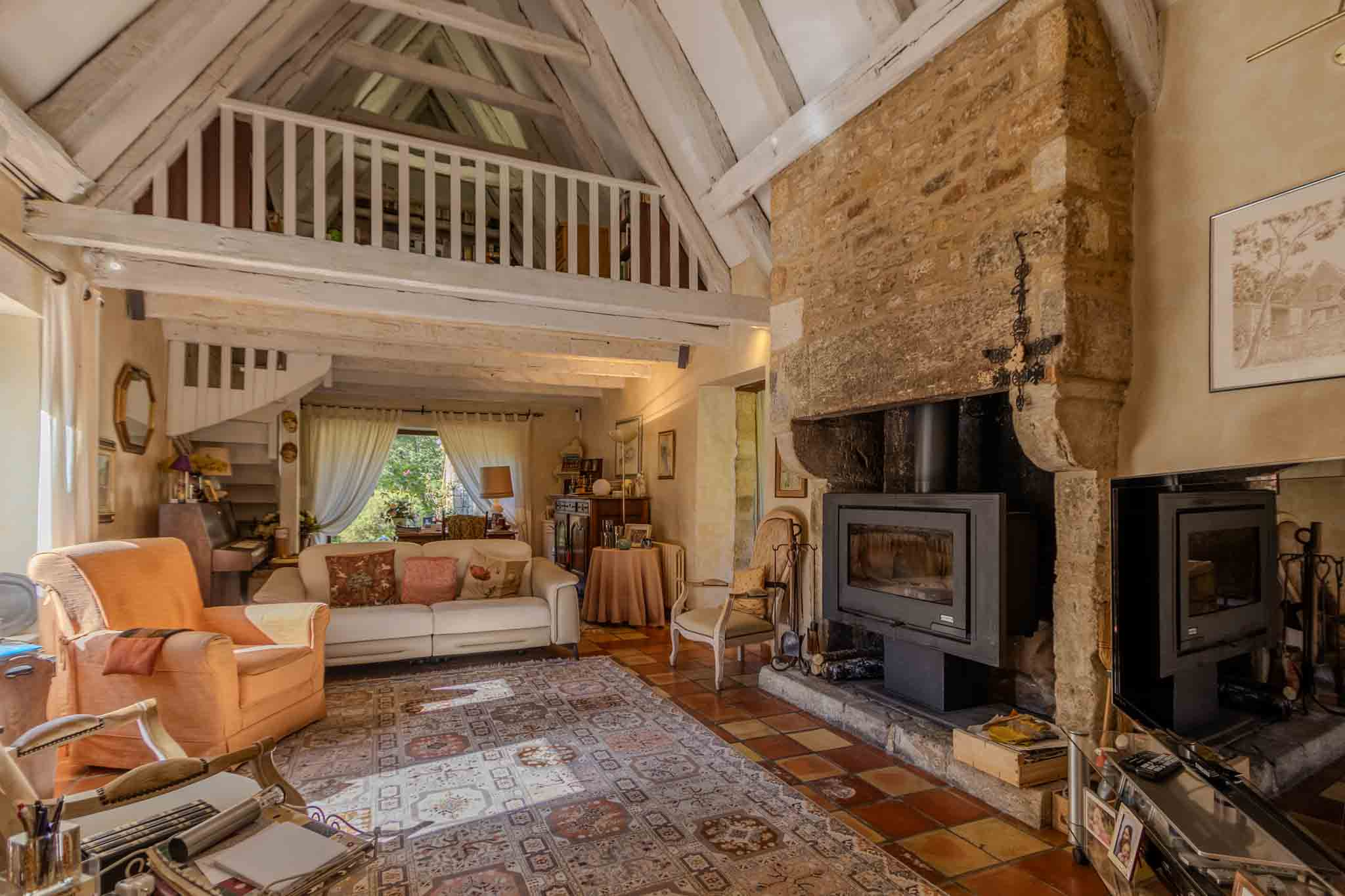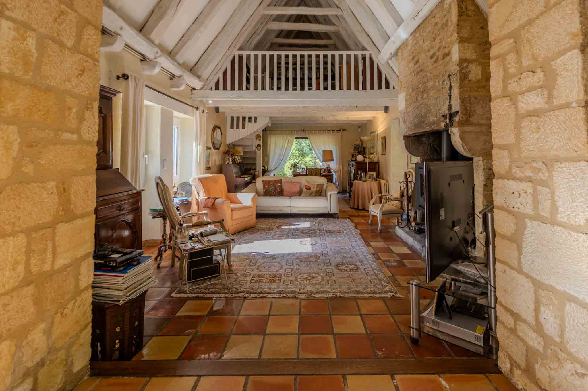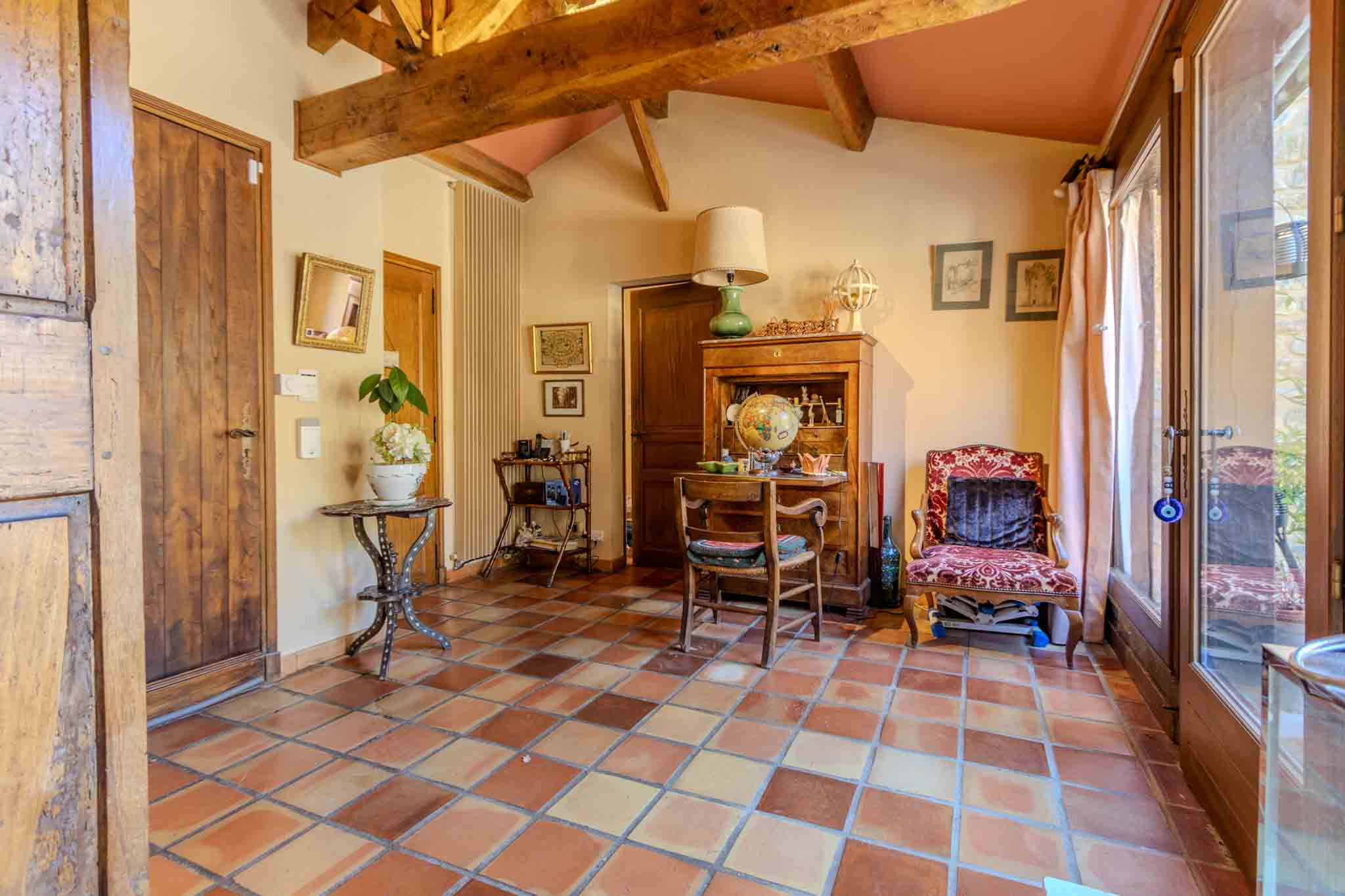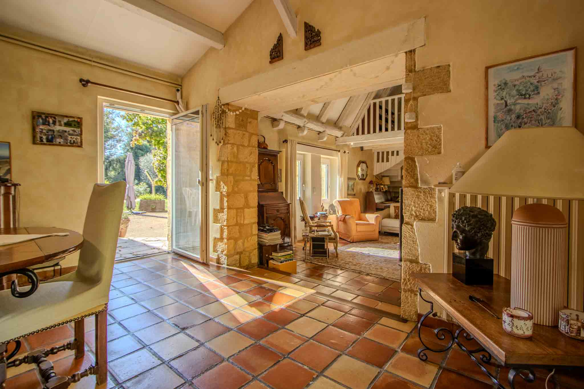 -Salon avec cheminée en pierre, poêle à bois, charpente cathédrale et, à l’étage, une mezzanine ouverte, -Bureau, -Cave à vin, -Chambre avec deux penderies, -Salle d’eau, -Dressing.