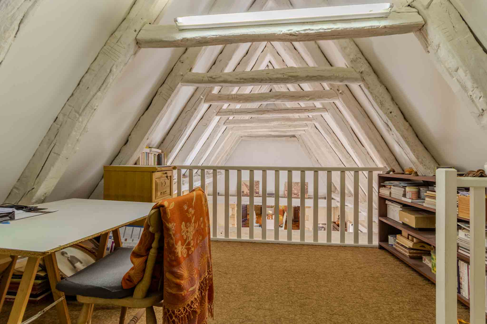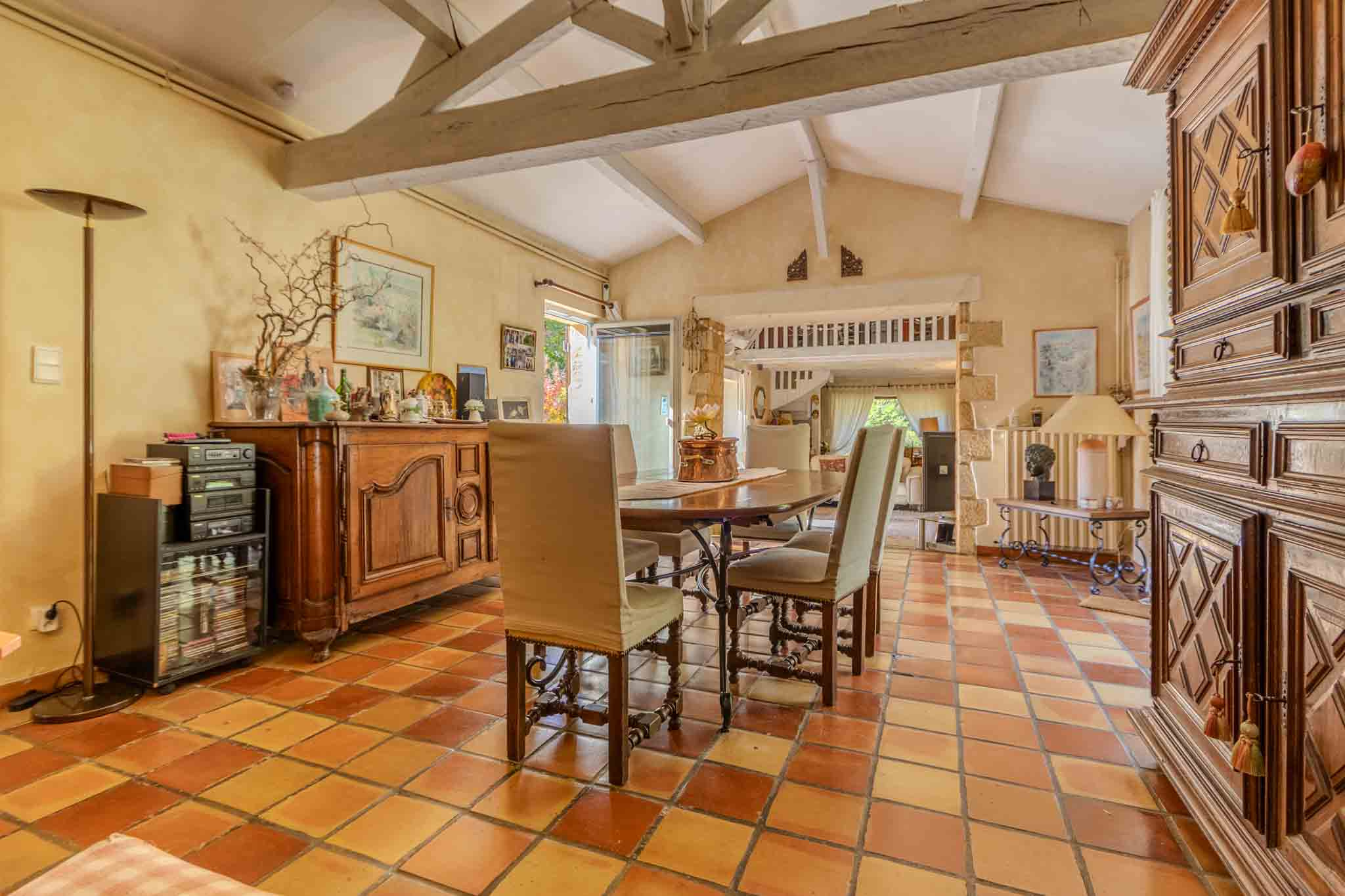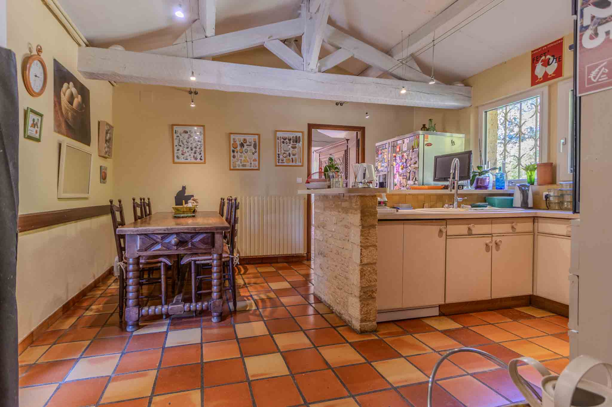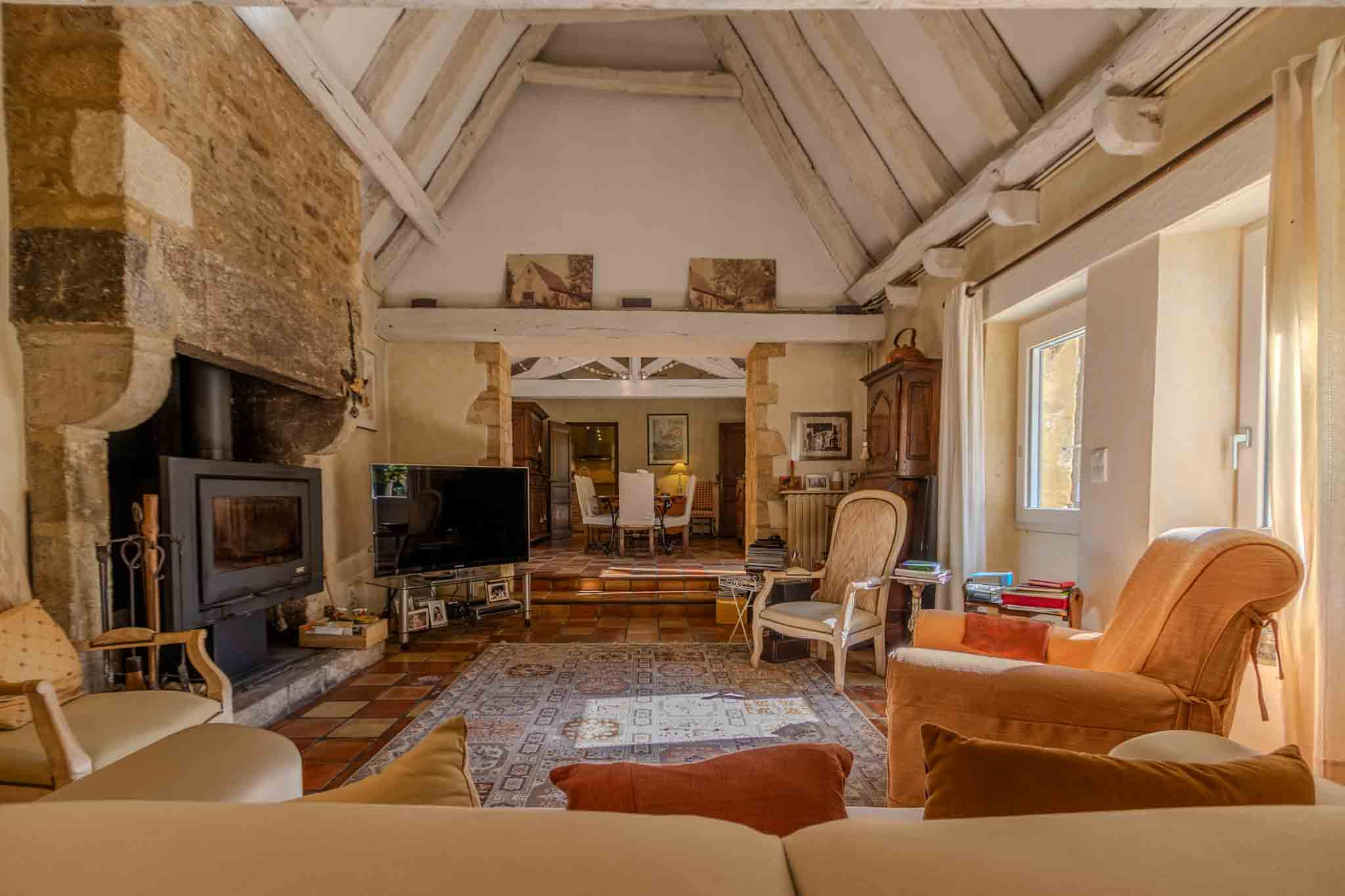 -Salon avec cheminée en pierre, poêle à bois, charpente cathédrale et, à l’étage, une mezzanine ouverte, -Bureau, -Cave à vin, -Chambre avec deux penderies, -Salle d’eau, -Dressing.