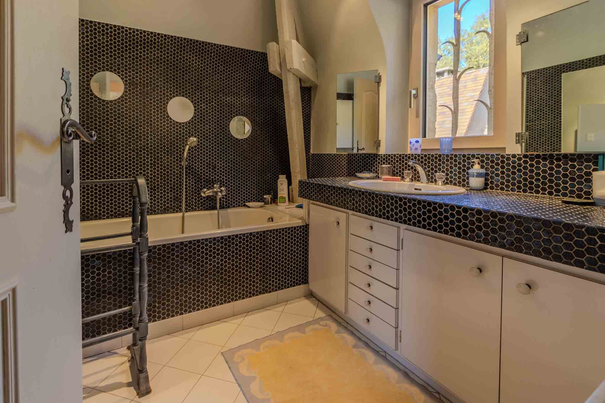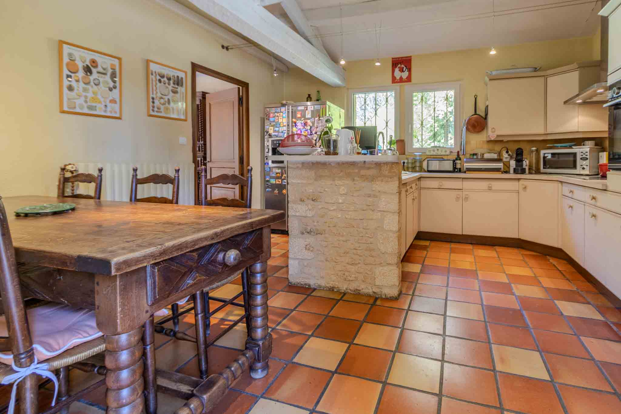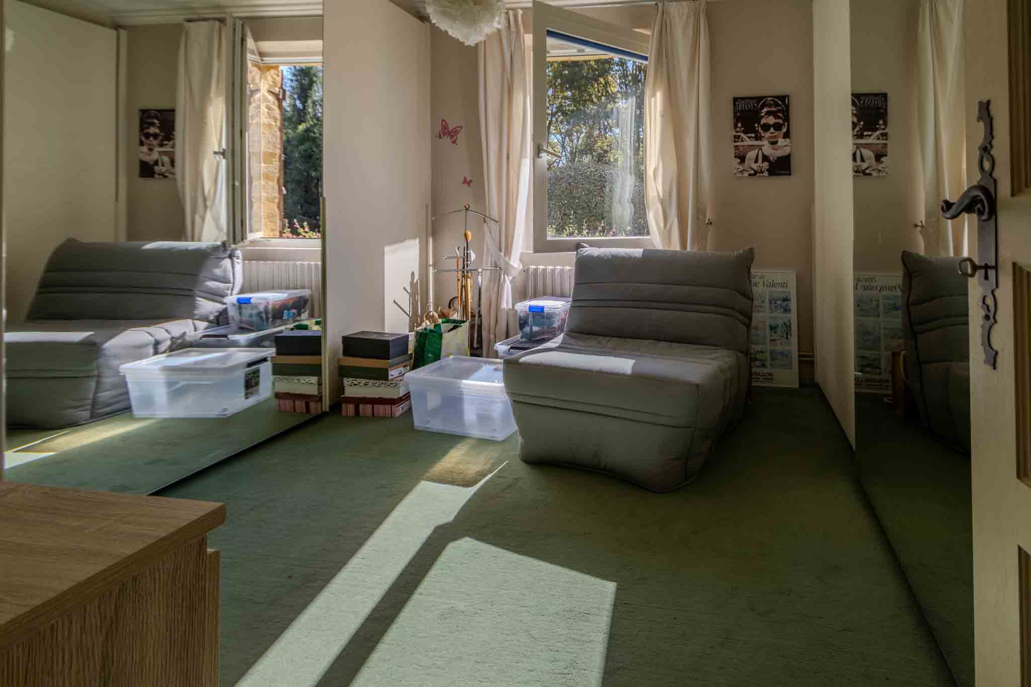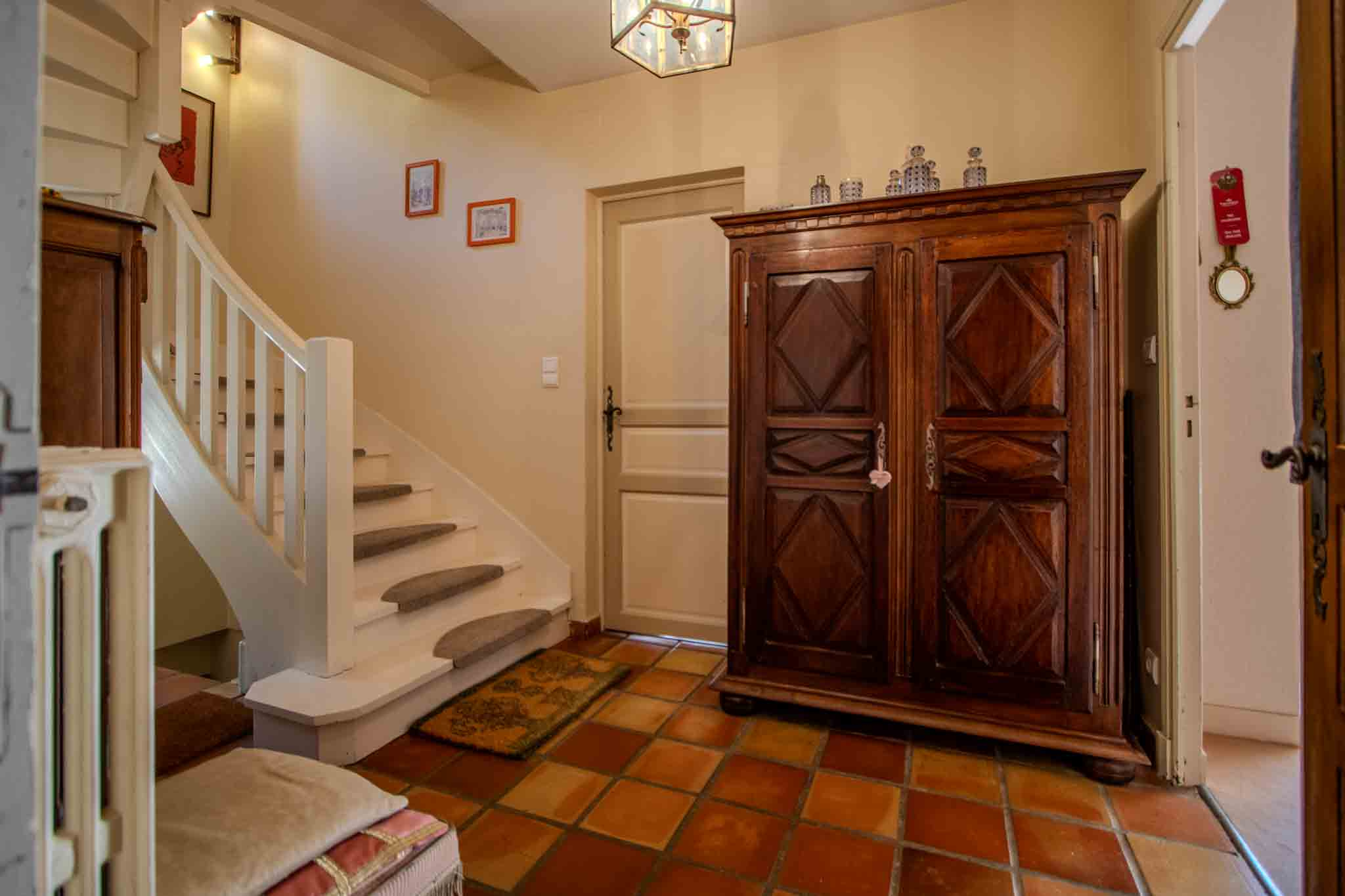 -Salon avec cheminée en pierre, poêle à bois, charpente cathédrale et, à l’étage, une mezzanine ouverte, -Bureau, -Cave à vin, -Chambre avec deux penderies, -Salle d’eau, -Dressing.