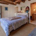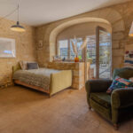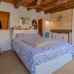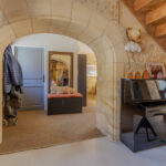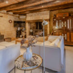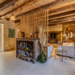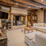 -Entrée sur séjour avec poêle à bois dans ancien cantou, pierres et poutraisons,
