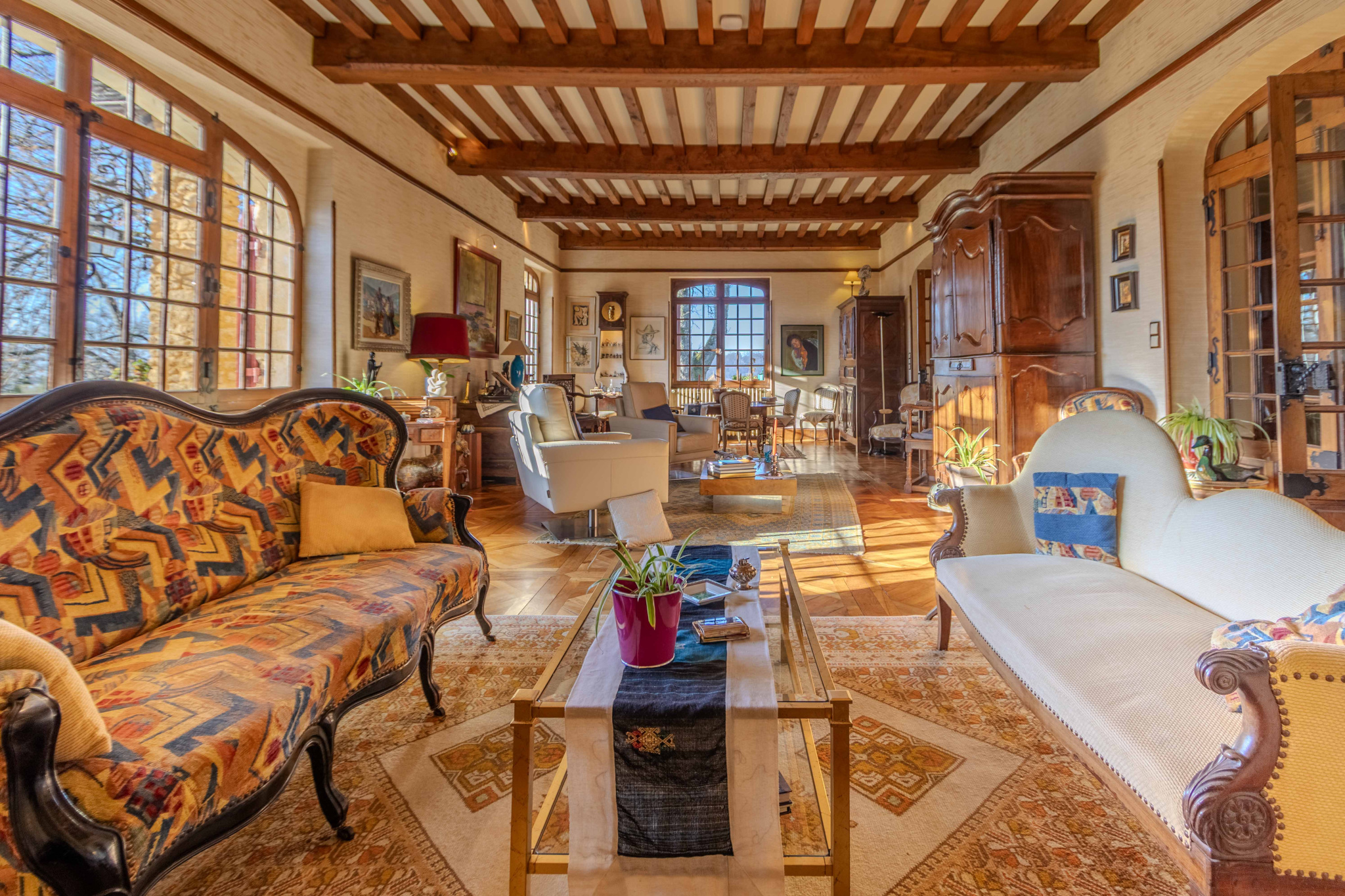 Manoir périgourdin situé à 5 minutes à pied du centre historique, construit dans les années 1890, entièrement restaurée en 1976, offrant un charme rare et des prestations d’exception telles que parquets à la française, tomettes anciennes et cheminées. L’intérieur séduit par ses volumes généreux et lumineux, harmonieusement répartis sur plusieurs niveaux. Édifié en position dominante, il bénéficie d’une vue imprenable sur la vieille ville de Sarlat, dans une situation absolument exceptionnelle. Le tout est niché au cœur d’un parc clos arboré de plus de 4000m2, agrémenté de beaux arbres et de buis soigneusement entretenus.