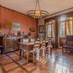 -Salle à manger avec petite cheminée ouverte, et sol en bois et tomettes