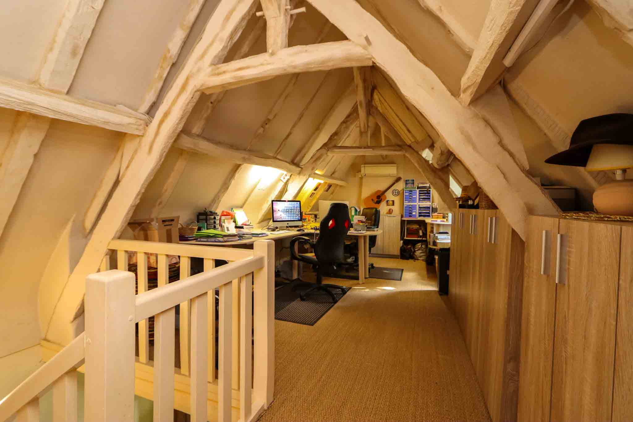 -Séjour-Salle à manger avec poêle à bois, poutraison,