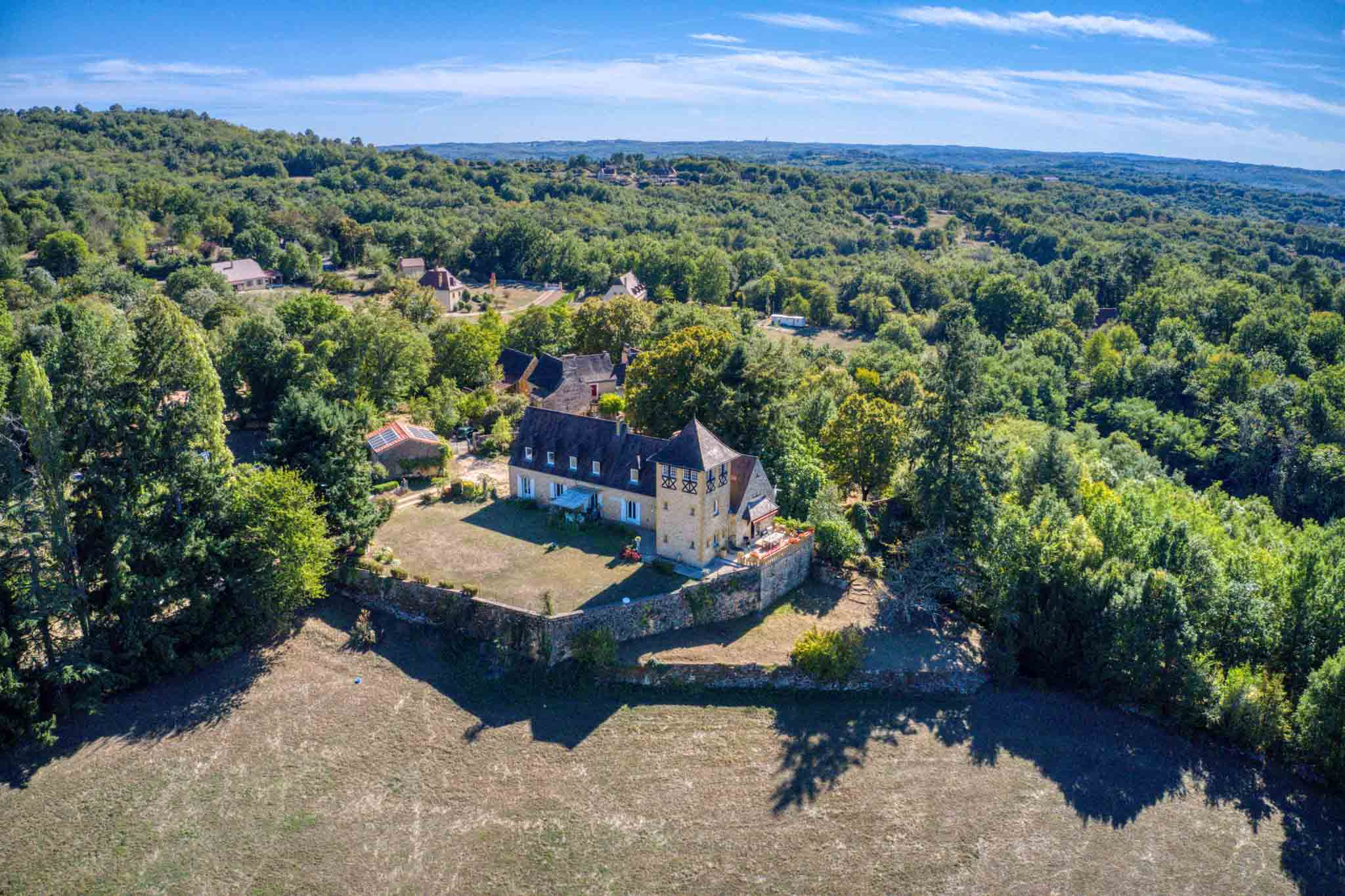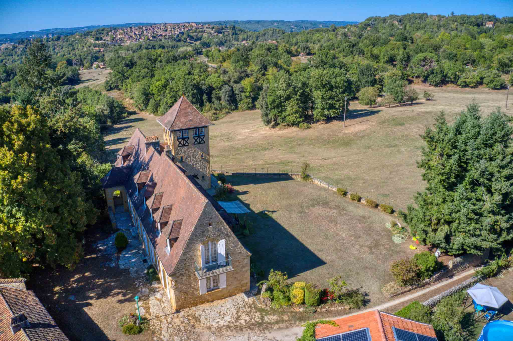 Aux abords de la magnifique bastide de Domme, classée parmi Les Plus Beaux Villages de France, cette propriété construite dans les années 1970 bénéficie d’une exposition sud-est et s’implante au cœur d’un environnement naturel d’environ 6 hectares. La maison d’habitation, élevée sur rez-de-jardin avec étages, offre de beaux volumes et des pièces lumineuses. Depuis le jardin et la terrasse, la propriété profite d’une magnifique vue sur la campagne environnante, apportant une agréable sensation d’espace et de sérénité.