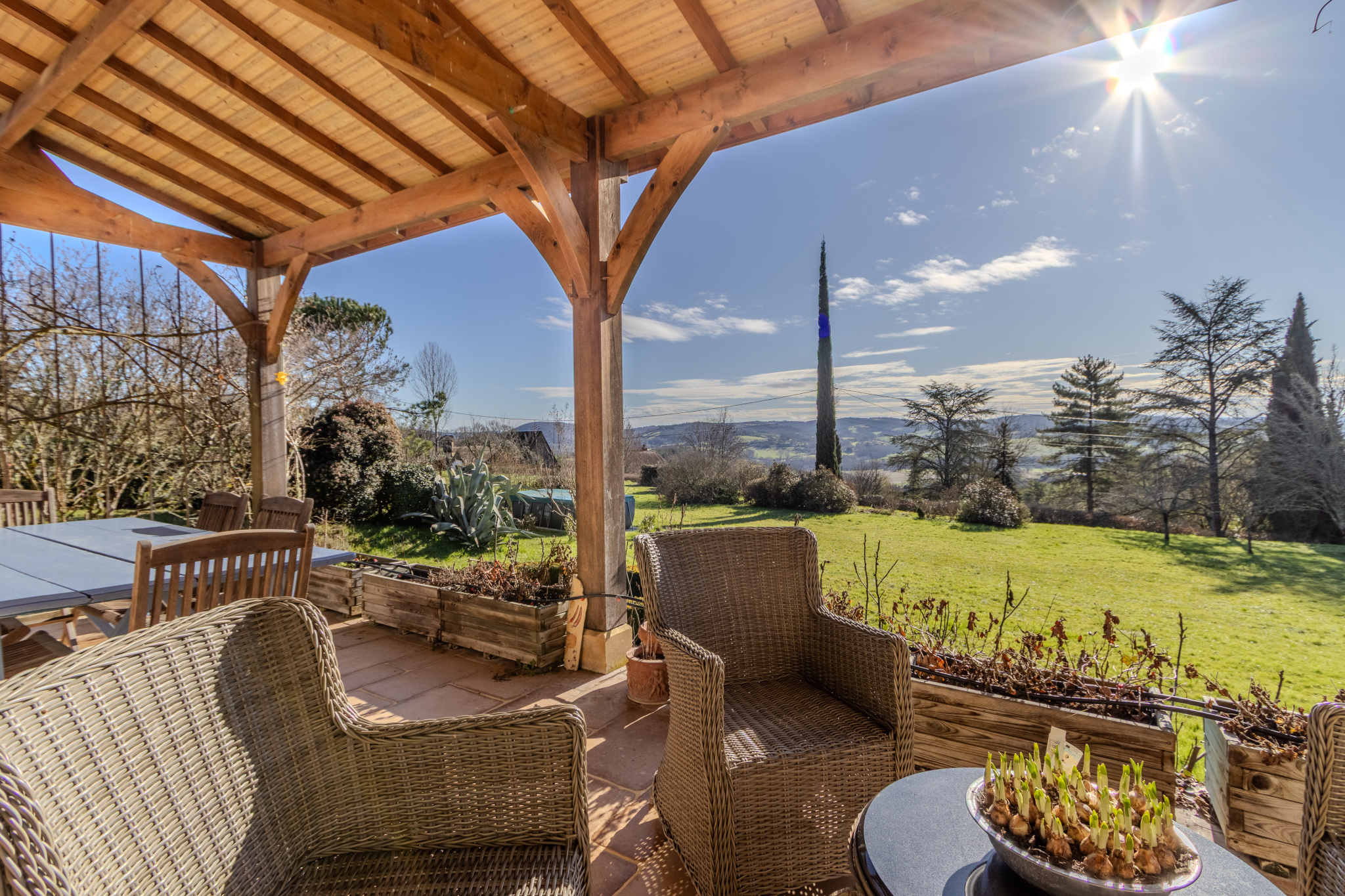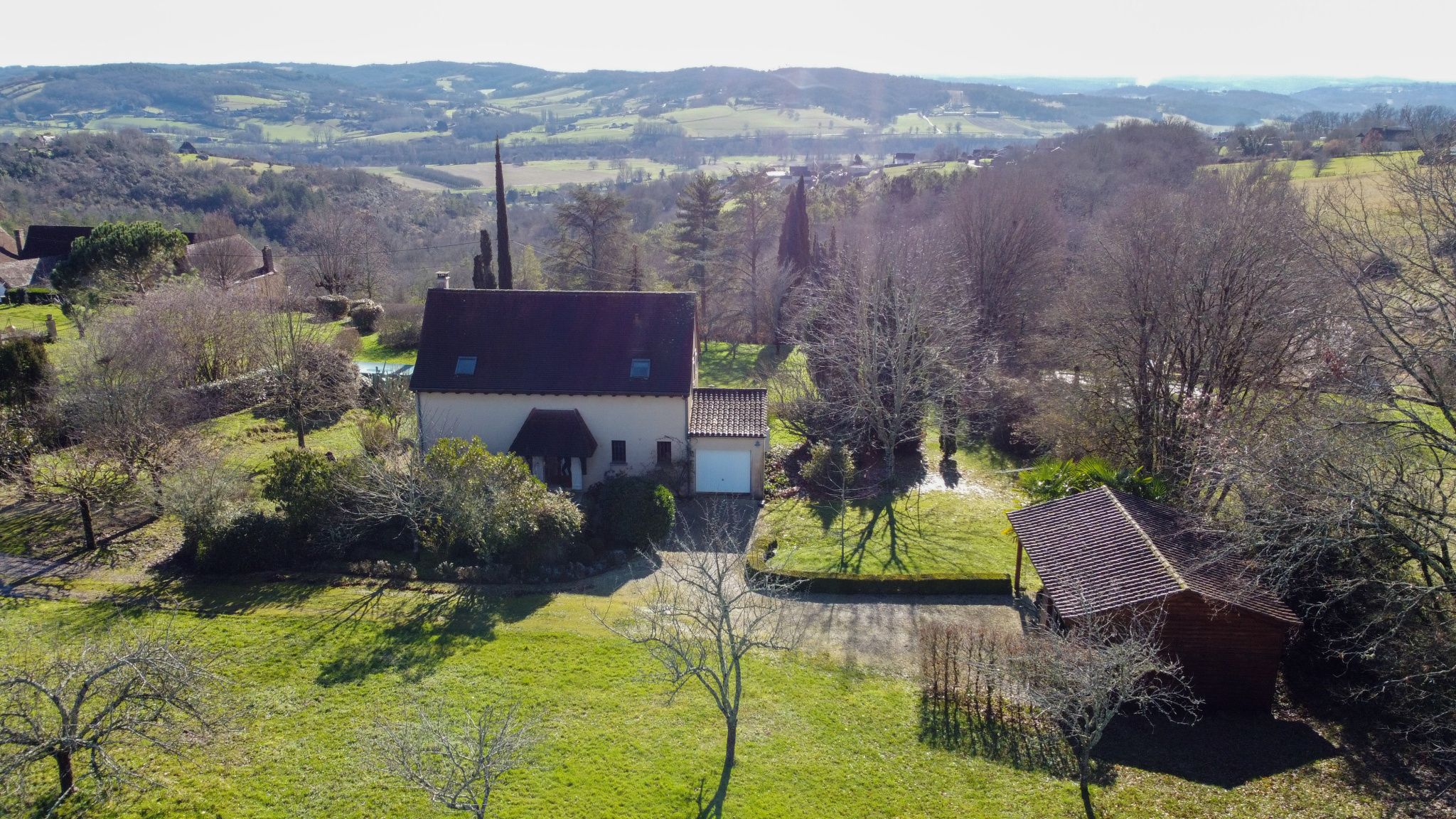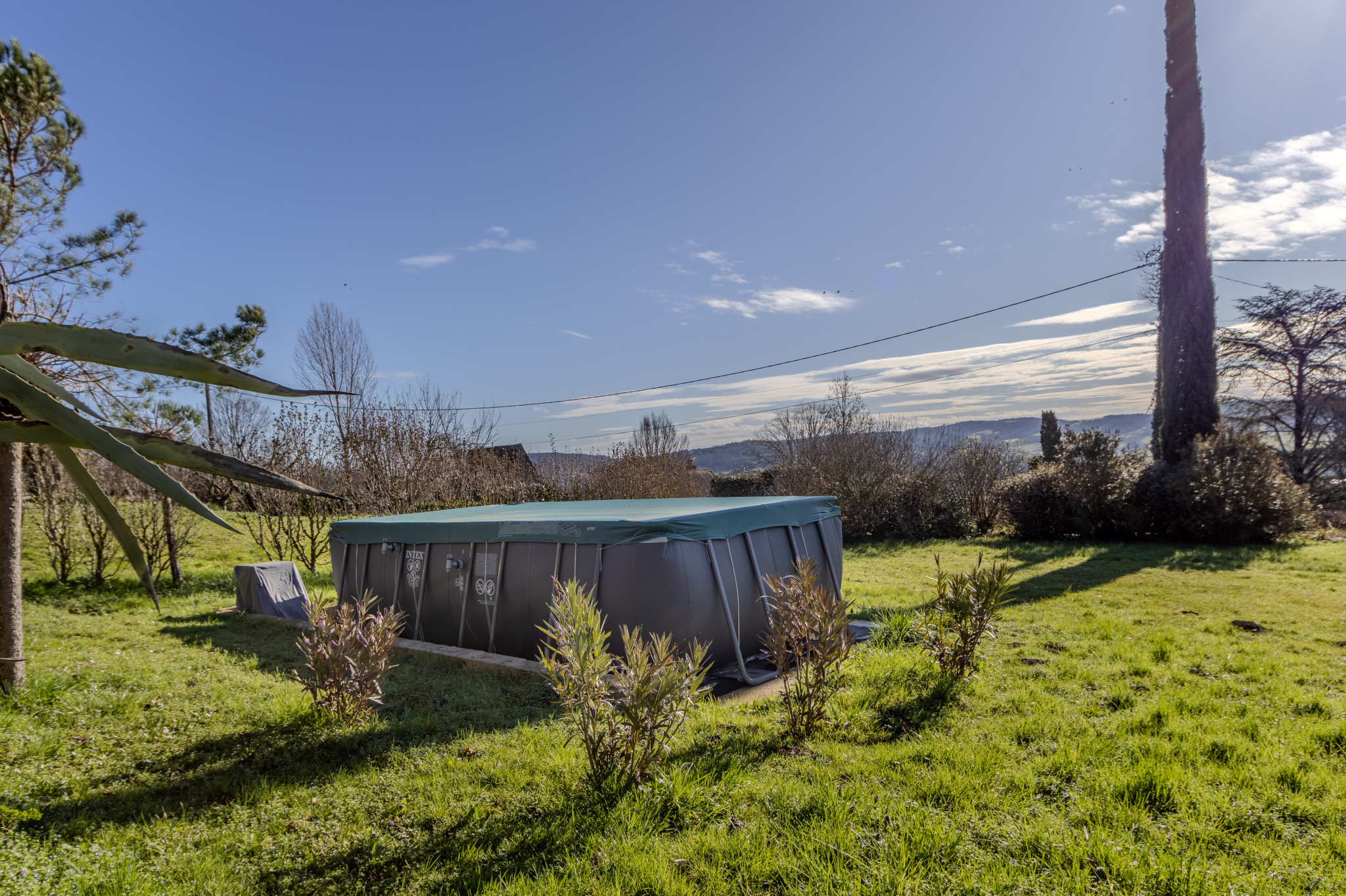 Charmante maison construite en 2005, pensée pour offrir confort et luminosité au quotidien. Elle bénéficie d’une agréable terrasse couverte avec vue dégagée sur la vallée, ainsi que d’un terrain arboré accessible par une allée privée. Située à environ 4 km des commerces, dans un environnement paisible sans être isolée, cette maison en parfait état est orientée plein sud et profite d’une piscine hors-sol récente. Le bien dispose également d’une annexe en bois pour le stockage ainsi que d’un carport et le terrain, soigneusement aménagé, comprend également un verger.
